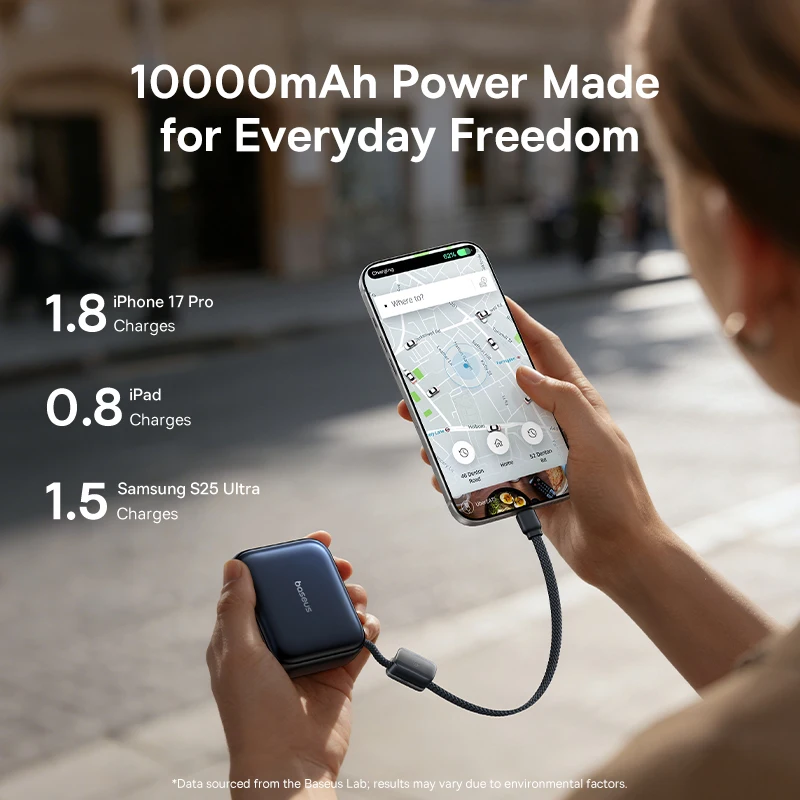 Baseus 45W Mini Power Bank 10000mAh Built-In USB-C Cable Pocket-Sized Smaller Fast Charging Portable For iPhone 17 Samsung S25