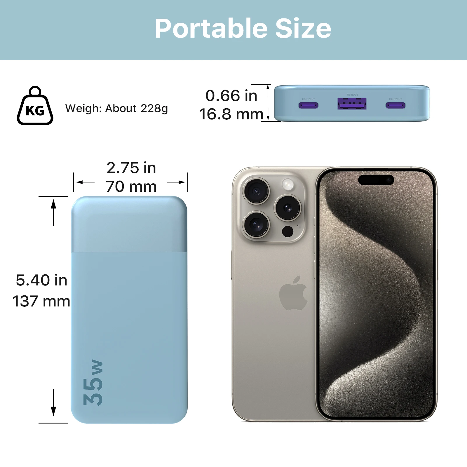 NOBIS N3510 Slim Power Bank 10000mAh Mini Pocket-Sized Smaller Portable Charger External Battery 35W Fast Charging For iPhone
